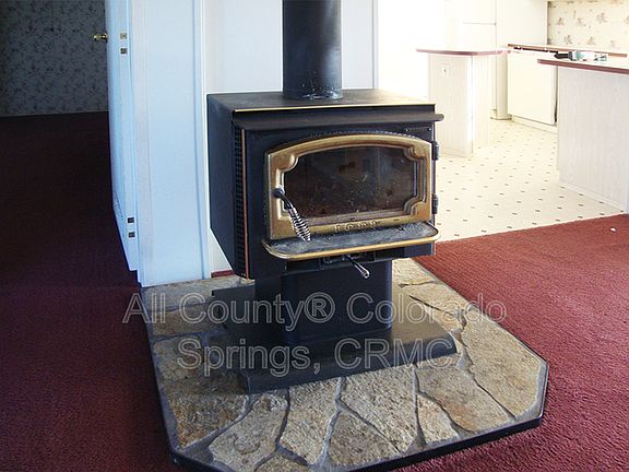 - Fireplace features: wood stove