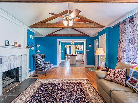 Adorable 3 bd, 2-full bth home completely renovated, exposed staned beams in living room & family room WITH 2 fireplaces (living room-gas & wood-burning w/insert family room), 5" base trim. Large Kitchen with pantry, lots of cabinetry, deep double sink, all appliances stay and center island/breakfast bar and separate dining room is 12x12. The real wood flooring is immaculate through-out majority of home. The family room is sunken new large picture window and door, and a fresh coat of paint. The master bedroom has a walk-in closet and full bath. Two other bedrooms are large and have large closets. Ceiling fans in every room. Hall bath has a walk-in shower. The main floor laundry room is huge with cabinetry, space for add'l fridge and access to covered patio. Covered patio is private and overlooks large level and fenced yard. Access to backyard from behind house, too. The lower level is dry w/access garage, drain-tile installed, water softner stays, large work bench & storage area.