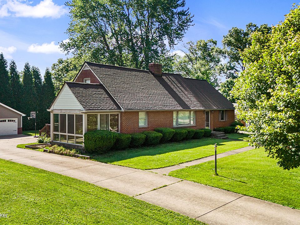 Talk about location! This home is conveniently located near shopping, restaurants, libraries, and the interstate, yet nestled in a quiet neighborhood with mature trees! You'll feel as though you're far from the city! On the first floor you'll find 3 spacious bedrooms, 2 recently redone bathrooms, original hardwood floors, and a wood burning fireplace! Located off the dining room is a sun room! Upstairs you'll find the primary suite with a recently refreshed primary bath, large closets, and attic space w/full door entrance offers even more space that could easily be finished for a private office or an enormous closet. The partially finished basement is a great area for entertaining with a kitchenette and theater area with the projector and screen remaining! Outside is a huge partially covered deck and park like yard with an invisible fenced already installed! The two car garage was recently built and has plenty of space for storing a small boat or RV!