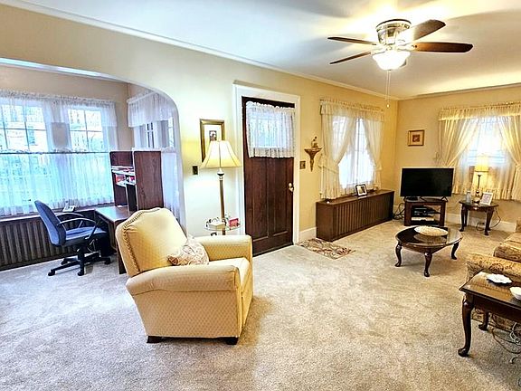 Come take a tour of this clean and well maintained 3 bedroom home. This long time owner has newer carpeting throughout the first floor. Relax in the sunroom or the spacious living room with a gas brick fireplace. The separate dining rooms flows into the eat-in kitchen. Sewers have been updated and most of the windows are newer. Don't miss out. Call today!