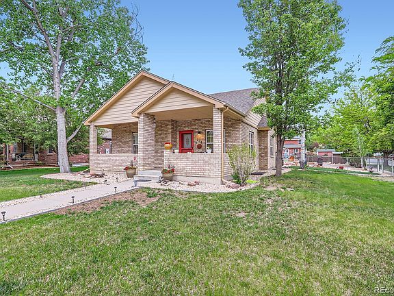 South facing brick bungalow in the desirable Mary’s Farm neighborhood just minutes from downtown Berthoud. Located on a huge corner lot and a short walk to Pioneer Park. This spacious home has 4 bedrooms with possible 5th nonconforming. Main level has new LVP flooring and a great layout for entertaining with the formal living and dining room. The large, finished basement has 9’ ceilings, a huge rec room complete with home theatre system (included), large laundry with ample storage, washer, dryer and utility sink, 2 bedrooms (1 non-conforming) and a full bathroom. Oversized detached 2 car garage with access from the backyard and the alley. Additional RV/Boat parking next to the garage off alley. Huge, fenced backyard with raised garden beds, automatic sprinklers, garden shed for extra storage, beautifully landscape paver patio and another concrete patio for endless outdoor living. Mature trees including an apple tree in the front yard! Central Air, NO HOAs, No Metro District. Easy access to I-25 and Hwy 287, close to shops, restaurants, rec center and schools.