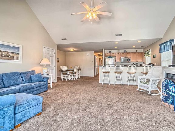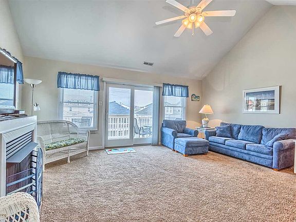 This wonderful 4 bedroom, 2 bath condo is located on the top floor and in a fabulous location. A bright and spacious living room hosts a gas fireplace and sliders to a private balcony. The open floor plan leads to the kitchen with dining area, breakfast bar, stainless steel appliances, and recessed lighting. 4 airy bedrooms are serviced by 2 full baths. Enjoy the bonus room on the first floor with ping pong table. Full laundry room in unit for added convenience. Additional features include a garage, storage area and enclosed outdoor shower. Priced to sell and comes fully furnished! Excellent rental history!