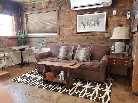 Wild West Hideaway in the heart of downtown. Currently unfurnished. Can furnish with 6 mo. lease no problem. Washer and dryer in unit. Efficiency kitchen with dishes and silverware. Wonderful front patio feels like you have your own cafe space. 1.5 blocks to courthouse square. Across the street from Public Library. Interior has been restored to original wood from 1914. All utilities and internet included. This is a downstairs apartment studio. All utilities plus internet included. Designated parking space in front of home. No smoking in unit or within 50 feet of home. Vape ok. No pets. Quiet time 10pm to 8am strictly enforced. Peaceful people encouraged to apply. Cleaning fee of $150. Non-refundable. First and last month's rent.