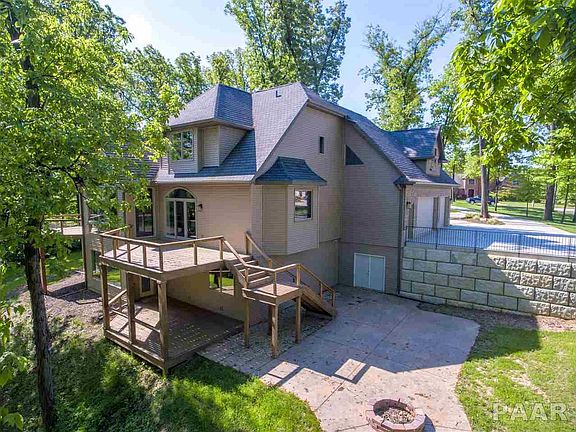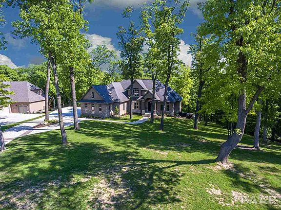A truly spectacular custom built home situated on 2+ acres of complete wooded privacy at the end of a quiet cul-de-sac, yet just minutes from downtown Peoria! Metamora and Germantown Hills school district! The attention to detail both inside and outside is beyond compare. The level of finishes-from the beautiful wood floors and stonework, to the intricate detail in the crown molding and trim work-it simply doesn't get any better than this. Top of the line cabinetry throughout the kitchen and bathrooms, high end appliances and granite tops, a large center island-a real dream kitchen!
