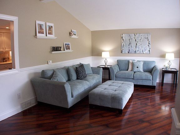 This 1700+sqft split has had a ton of updates & remodeling done in the last 2 years! Vaulted ceiling livrm w/new wide plank laminate flring, shadow boxes & chair rails added! Open to eat-in kit w/new laminate flring, refinished cabinets, new hardware, fixtures, sink, recessed lighting & stainless steel appliances! Entire interior painted, all new carpeting 2012. Remodeled main bath, recreation room + powder room, sun room off kitchen. Updated electric (approx 2 yrs), roof (approx 8 yrs). Central air. Too much to list-- a must see!!