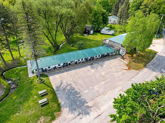 Welcome to this charming motel resort located in the vibrant community of East Jordan, directly across from the scenic South Arm of Lake Charlevoix. This popular lodging facility boasts 8 beautifully updated rooms, plus an additional 2-bedroom home, perfect for owner's accommodation or additional rental income. Other features include garage, laundry/storage and a large lot with lots of on site parking Guests will enjoy stunning lake views and convenient public access to Lake Charlevoix just steps away. East Jordan is one of Northern Michigan's beloved destinations, where the Jordan River meets the South Arm of Lake Charlevoix. The area offers numerous waterfront parks, nature trails, a marina, and a lively downtown filled with shops and restaurants.---------------- This property provides easy access to Charlevoix, Boyne Mountain, Petoskey, Lake Michigan, and all the attractions that make Northern Michigan so special. Currently professionally managed, this motel resort is an excellent investment opportunity. Alternatively, it can be operated as an owner-occupied business with the spacious apartment. Don't miss your chance to own a piece of Northern Michigan paradise!