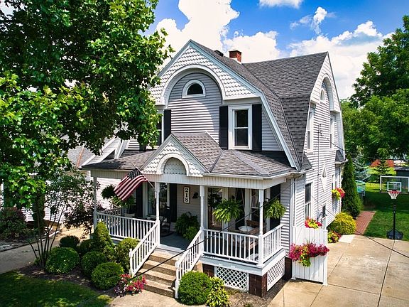 Straight out of a magazine, this picture perfect home is sure to please from the moment you lay eyes on it!! Warm & welcoming, this character filled 4 bed, 1.5 bath home offers convenient central location, near schools & park. Excellent curb appeal & classic large front porch welcome you inside to the delightful foyer/entry area with gorgeous stairway & beautiful original woodwork/hardwood flooring throughout. An abundance of natural light flood the living/dining room areas. Remodeled kitchen w/stainless appliances, butcher block counters & subway tile backsplash for a modern farmhouse feel. Updated half bath off kitchen. The upstairs is equipped with 4 bedrooms(some newer flooring) & remodeled full bath(2020). Relax on back porch overlooking lower pool deck & sparkling above-ground pool(2020) to cool off on those hot summer days. Shed for storage. Some updates include newer roof, sump pump & newer HWH(2021). Move right in & enjoy all the charm of yesteryear w/added modernized touches!