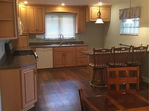 Well maintain brick home with a front porch and level front yard. Main floor: Marble on the hearth of the gas burning fireplace in the nice sized living room. Large updated kitchen, including island with chairs and beautiful cabinets. Newer gas stove. New wood looking laminate flooring through the first floor except for the bedrooms. Two nice size decks in the back - one off the kitchen - one off the lower level. Lower Level: A nice sized family room with a bar for entertaining and a wood burning fireplace. Another large room that can be used for multiple purposes. A storage room, a full bathroom, laundry room and a utility room complete the lower level.