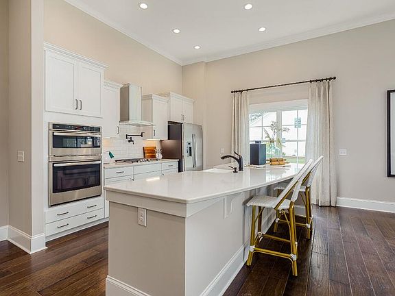 The Edgewood floorplan welcomes you into gracious open concept living at its finest. It has smooth nine-foot ceilings that give way to twelve-foot vaulted ceilings once the entry way threshold is crossed. A large kitchen, great room, and breakfast nook await. Keep strolling and you'll be able to relax on your spacious screened porch with its own privacy wall and outside natural gas fireplace or stay inside and enjoy your in-door natural gas fireplace or your large primary suite. Enjoy exclusive luxury vinyl plank flooring, quartz countertops, and much, much more! This gorgeous functional floor plan rests on a homesite that overlooks nothing but ponds and protected wooded areas.