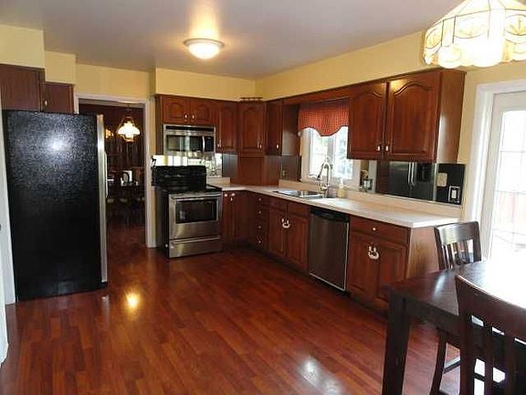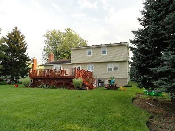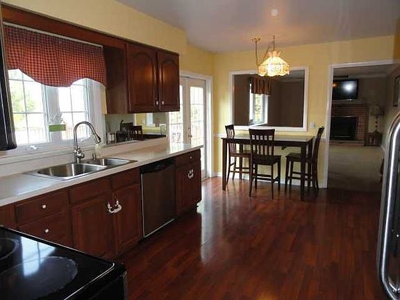 Enjoy the comforts of this country colonial! 1808 sf plus 420 in the walk out basement. The big screen projection TV will remain. New Pergo floors through the hallway, kitchen, dinette, dining and living rooms. Both bathrooms have been remodeled with designer touches. New frieze wall to wall carpeting on 2nd floor. Huge 21 x 24 foot deck overlooking Hawks Nest cul de sac. Stainless dishwasher & over the range microwave. wood burning fireplaced family room with airtight insert. Vinyl siding and all vinyl windows. 10 x 14 foot shed has a overhead door and siding that matches the house.