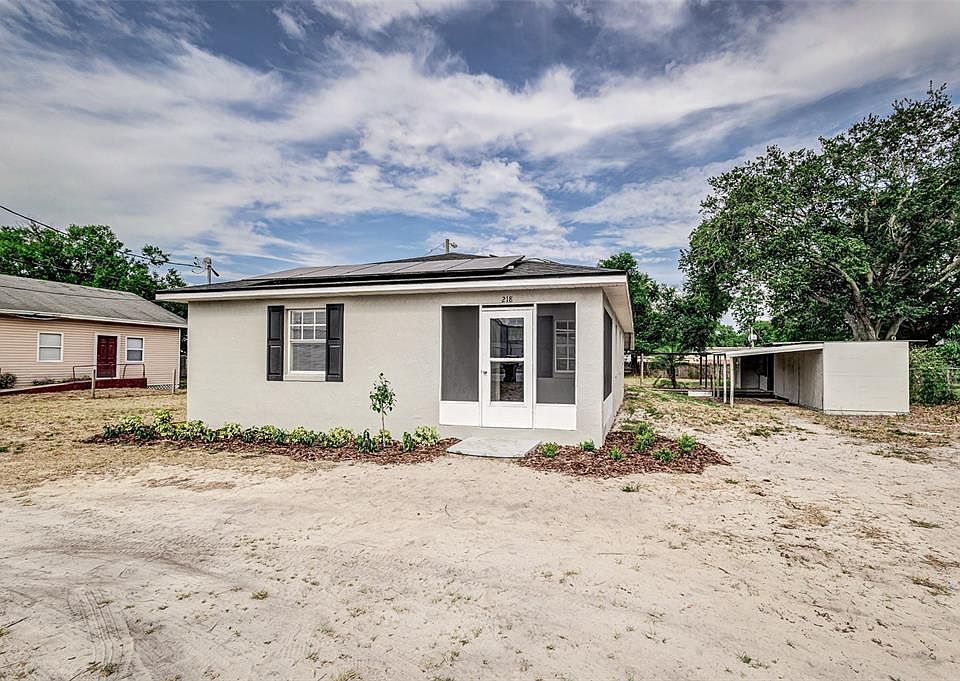 Welcome to this newly renovated home just outside of Downtown Auburndale! This charming 3-bedroom, 1-bathroom home has undergone a full transformation, boasting modern upgrades throughout. Step inside to discover all new flooring, ceiling fans, light fixtures, and fresh paint throughout the home. The heart of the home features a spacious, brand-new kitchen and open living area, perfect for entertaining or spending time with your family. The kitchen features brand-new stainless-steel appliances, granite countertops, ample cabinetry, and hosts the laundry closet. All of the bedrooms have been updated and have built-in closets and blinds. The bathroom has also been updated with a new granite countertop, cabinets, and subway tile. Plumbing and electrical have been updated, and there is a brand-new A/C and electric water heater. Outside, you'll find a new roof and whole house solar energy panels, spacious backyard spanning almost half an acre providing plenty of room for outdoor activities, new septic drainfield and new landscaping. Enjoy coffee or cocktails on the screened-in front porch or hang out on the covered back porch with family and friends. Additionally, a large shed in the backyard offers convenient storage space or can be transformed into a workshop. Don't miss your chance to make this totally renovated home your own – schedule your showing today!