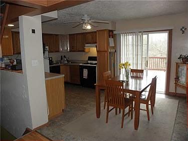 Very Well Maintained 2 Bedroom featuring Open Contemporary Style w/ Log Burning FirePlc in LivRm. Spacious Eat-in Kitn w/ Newer Sliding Glass Door (09) to 25x16 Deck Overlooking large Fenced back yard (05)+ separate step-up DinRm w/ Closet. Kitn flr 06, Pergo Flrng 05. New A/C 6-13, Most all new windows 09 (except front). Msr Bath & 2 closets plus 8x14 Storage Rm / Closet off hall. Stunning Stone Floor in HUGE GameRm w/ 2nd Full Bath w/ Shower Stall. Sliding Glass Dr in Basemnt leads to 16x13 Cov'd Patio.