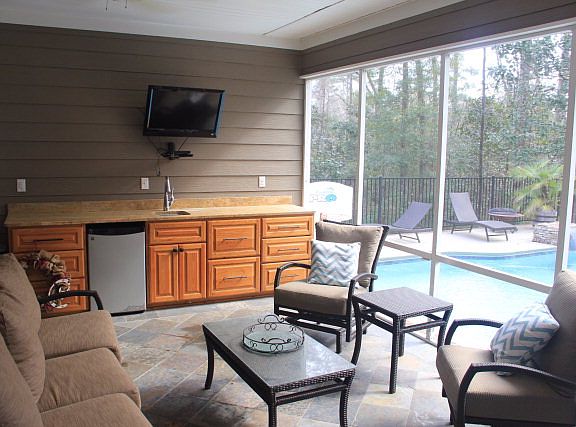 This beautiful 3 bedroom, 2.5 bath, located in Gatlin Bluff was constructed in 2010 and has many upgrades. Open floor plan with large family room/den, large open kitchen with center island and granite countertops. Viking appliances, custom cabinets, Travertine tile floors. Both bathrooms have Jason Jacuzzi tubs, custom tile shower in master, pine flooring in bedrooms. The lanai/screened porch has custom cypress cabinets, refrigerator, slate floors and overlooks a saltwater gunite pool-great entertaining and relaxing pool deck. Other upgrades include 2-40 gallon programmable water heaters, outside shower at pool, security system, sprinkler system, accent landscape lighting, 450 sq.ft. bonus room upstairs(unfinished, but could be easily converted to finished bedroom/bath), 150 sq. ft. storage room with roll-up door just off back porch, and encapsulated crawl space. Beautiful setting-call for appointment.