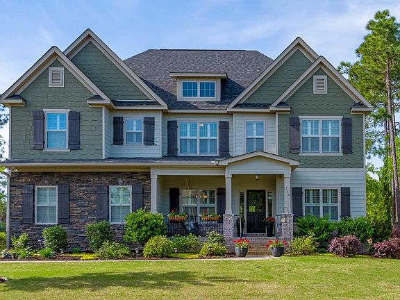 Beautiful spacious home with an open floor plan located on the 7th fairway at Windemere. 18 ft great room ceiling, 9 ft rest of house. Hardwood floors downstairs. Plantation shutters throughout, except for great room which has Roman shades for multiple level windows. Great room opens to an island kitchen. Kitchen has granite countertops and stainless steel appliances which convey. Coffered ceiling in dining room. Upstairs bedrooms have vaulted ceilings. 5 bedrooms with private/ shared baths. Large master bedroom and bath. Patio overlooks golf course. Close to playground.