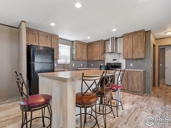 Welcome to this beautiful 3 bed 2 bath 2020 home in Hudson! Enter into the open living area with a large built in entertainment center. The kitchen has two tone cabinets with an island with eating space and room for 4 dining chairs. The kitchen sink is a large stainless farmhouse style sink. There is vinyl flooring throughout the entire home and beautiful sliding glass doors out to the side deck. Love your spacious primary bedroom with its own private bathroom. The primary bathroom has a gorgeous large double vanity with custom tiled backsplash to the ceiling, a soaking tub plus a step-in shower. Bonus, the laundry room is its own separate room with shelving for extra storage. Enjoy your outdoor living space with red paver pathway and side yard, plus there is a shed for more storage. Also Ring Camera is included!! Conveniently located right off of I-76 & near highway 52.