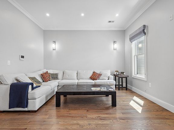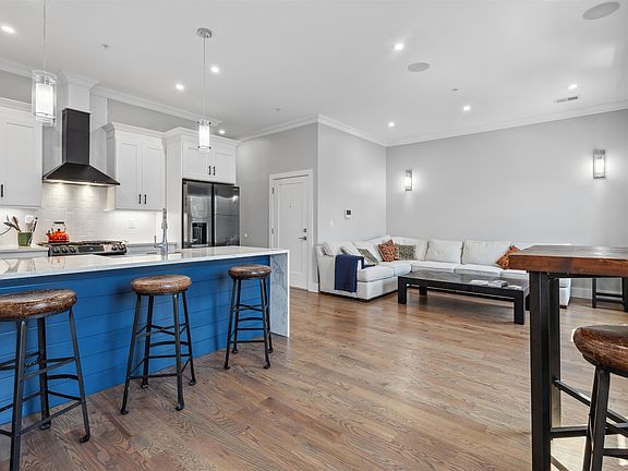 Move into the most desirable neighborhood in the Jersey City Heights, Mt. Pleasant, with over 1,300+ ft 2 of living space in this 3rd-floor penthouse 3/2 condo. This beautiful home was gut-renovated in 2022 with spacious open floor plan, roof deck, 100 ft basement storage unit, central air and heat, EV charger, and parking for one compact vehicle. The unit is classically finished with crown molding framing tall 10 ft ceilings, red oak hardwood floors, and large Pella windows. The modern white kitchen shines with sparkling waterfall quartz counters, stainless steel farm sink, shaker cabinets, blue accent shiplap, Summit wine fridge, garbage disposal, built-in drawer microwave, and black Samsung smart appliances. Additional smart home features include a ring doorbell and camera, Samsung stackable washer and dryer, and built-in premium speakers for the living room and roof deck. The unit is bathed in natural light with large windows on all sides covered with custom Top-Down-Bottom-Up Roman blackout shades. All bedrooms have ample closet space and built-in shelving. Spacious 300 ft master bedroom with en-suite bathroom and large walk-in closet. Gaze at the Manhattan skyline and One World Trade from your California King bed. Bathrooms boast stylish Blossom vanities, glass shower or bathtub combo, and polished chrome fixtures. Soak in additional scenery with a 500 ft private roof deck showcasing incredible cityscape views, just waiting to become your outdoor living room. Minutes walk to Washington and Riverview-Fisk parks, hip eateries and coffee shops, grocery stores, schools and daycare, and the 9th/Congress Street Hoboken Light Rail Station which quickly transports you to NJ Path Train and NYC MTA. Pets allowed with some conditions and pet deposit.