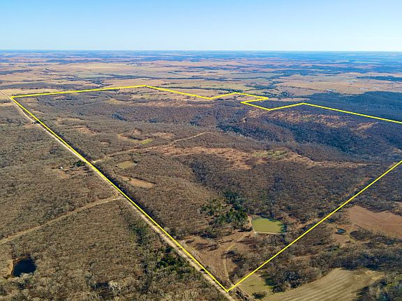 If you're looking for a large, world-class hunting property in Eastern Kansas, a property large enough to hold deer throughout the year, a property that provides everything needed to allow bucks to reach their maximum potential, and want the property turn key and ready to go from day one, then look no further. This sprawling 840-acre ranch is a sight to behold. The amount of effort, attention to detail, and layout of this property will rival any property on the market today. Located in the Cross Timbers Ecoregion is a unique topography of forested floodplains surrounded by terraces of prairie grass, and rolling hills of hardwoods and oak savannas. This provides some of the most diverse habitat in the state of Kansas. One look at the aerial and you will see the massive amount of rolling hardwood-covered hills and draws, This cover provides ideal habitat for deer to evade hunters and predators, enabling them to reach full maturity. All while providing natural food sources in the form of mast crops, Forbes, and native browse. This property gently transitions from rolling hills of thick timber to soft edges of oak Savannas, then to lush prairie grass flats. This transition of edges not only provides diversity but also sets up ideal locations for deer activity and prime ambush locations. To further help draw the wildlife to more confined locations, the current owner has broken out and planted approx. 60 acres more or less in food plots planted in various food sources, such as Brassicas, Rye, and Clo-ver, just to name a few. Staging plots and hinge cut edges were painstakingly carved out in the timber, leading to the larger feeder plots planted in the open hillsides and flats of the prairie grass. Plans to add another 20-30 acres of row crop production have already been arranged if the new owner desires. An extensive trail system with imported gravel has been put in place to give access throughout the farm, and its borders. 2 firebreaks have been carved out dividing the farm into 3rds to allow for safety, as well as the option to only burn certain portions of the farm a year if desired. Tall mounds of dirt have been piled up along the road frontage to prevent the temptation of road hunting and to add a sense of security for the wildlife. On the north side in the old-growth timber, Expansive piles of trees were lined out along the road frontage to provide the same sense of security and cover, all while allowing strategic locations for the wildlife to pass through. There are several ponds/watering holes throughout the property along with pockets of spring water in the draws and ridge bottoms providing year-round water. The property has 8 gates to gain access to the farm from various locations which allows access and approach to the entire farm in nearly all wind directions. You really need to see this property in person to fully appreciate just how perfectly set up it is. The farm has an exceptional and well-thought-out 3 bed 2 bath shophouse with 1500 sq./ft living space and 1500 sq./ft heat-ed shop area with 3 garage doors to store your equipment, extra vehicle, UTVs, tractors, etc. This property truly is one of a kind and will not disappoint. There is an additional 587 acres available with equally great hunting located approx. 20 minutes away from this farm. Call the listing agent today to schedule your own private showing.