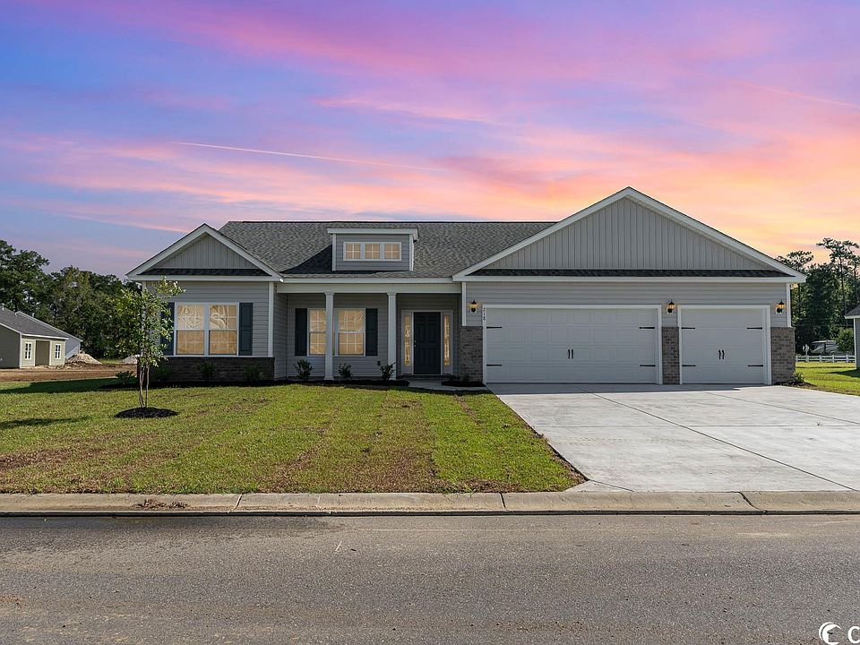 This Beautiful Sullivan plan is 1812+/- heated sq ft, This home Has 3 Bedrooms 2 Bathrooms and a 3 Car Garage.  Spaciously open light and bright kitchen, dining area, tons of storage space. Chestnut Ridge is a Natural Gas Community. The Kitchen has Efficient stainless steel appliances, Gas Range,  large work island, Quartz countertops to make cooking in your new home enjoyable. Your master suite, separate from the other bedrooms, includes a large shower, a double vanity, walk-in closet, plus a separate linen closet for additional storage. Enjoy the coastal breezes and peace and quiet of the area on your covered back porch.  Building lifestyles for over 35 years, we remain the Premier Homebuilder of new residential communities and custom homes in the Grand Strand and surrounding areas. In 2022 and 2021, we received the Best Home Builder award from WMBF News Best of the Grand Strand. We began and remain in the Grand Strand, and we want you to experience the local pride we build today and everyday in Horry and Georgetown Counties. We are excited to welcome you home at Chestnut Ridge. This is the Grand Strand's area Leader in Building affordable homes. Take comfort in one of our newly constructed homes that has a reputation for quality and value. Whether you are a first-time home buyer or looking for your next home, We are certain to have Community is sure to have a home that suits your lifestyle and Needs. Let us help you through the buying process and welcome you to your new home.  The Chestnut Ridge Sales and Information Center is Open Tuesday - Saturday 9:00 until 5:00 PM. Please call to schedule appointments. We Look Forward to seeing you soon! Photos are of a similar home and are for Illustration purposes only.