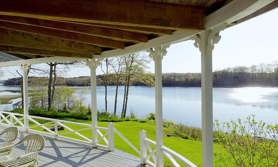 Waterfront Gem . . . This charming period home is set on high, overlooking the Westport River. Mesmerizing water views from most rooms, the home offers spacious living room with wood burning stove, dining-family room with direct access to spectacular, wrap-around covered porch, casual eat-in kitchen, first floor master bedroom with bath, powder room and 3+ bedrooms/bath on the second level. Hardwood floors, bead board, antique details...Sited on nearly two acres, the property includes a detached two-car garage, studio/shed, stone walls and rolling lawns to your direct water access to the Westport River...minutes to Westport's fine, white sandy beaches.