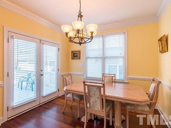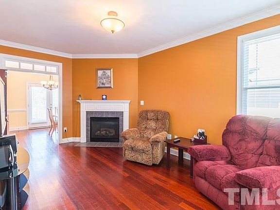 Accepting Back-up offers. Fantastic property in popular Scotts Mill neighborhood, Apex. Rocking chair frnt porch w/NO home across the street, just trees! Premium hrdwd flrs on 1st flr. Family w/crown molding & gas FP. Great kit w/ island, gas range, solid surface tops & SS appliances. Mstr suite has WI closet & beautiful bath w/garden tub and sep shower. Rear deck & yard. Rear 2-car garage & plenty of parking in driveway. Close to schools, shopping & restaurants. Comm Pool(optional), plygrnd, tennis, etc