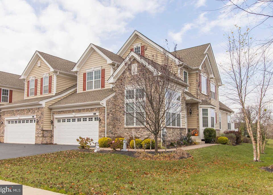 Why wait? This fully upgraded End Unit Carriage home is move-in ready! As you enter the private side entrance into the stunning two-story foyer that has a curved wooden staircase which leads to the open second floor loft. To the left is a perfect private study with French doors and a vaulted ceiling. The upgraded Brazilian Cherry hardwoods extend throughout the main level. Next to the foyer is an open formal dining area that leads to the custom gourmet kitchen which is truly a chef's delight- Kitchen Aid appliances, built-in 5 burner gas stove with high end ventilation system, dual wall oven and microwave, 42' upper cabinets, staggered with moldings, under cabinet lighting and tumbled stone backsplash as well. An oversized granite island has plenty of room for seating and a convenient prep sink, there is also a French door pantry with custom built-ins. The kitchen opens to the oversized living room with vaulted ceiling, recessed lighting and a gas fireplace- perfect for those cold winter nights! The main level primary bedroom has a coffered ceiling and luxurious en suite bathroom- with dual sinks, granite countertop, an oversized, fully tiled - frameless shower and even a heated floor! The large custom walk-in closet is a show stopper. Upstairs there is a large, open loft which overlooks the foyer and leads to 2 bedrooms with adjoining private full bathrooms. The huge finished basement has is full of possibilities (ie: wet bar rough in) and includes a powder room, a large storage room and walk out stair case. Outback is an oversized trex deck, truly the perfect place to sit and watch the sunset. White Springs at Providence provides low maintenance living with resort-like amenities including- a beautiful club house, kitchen, game room, fitness center, out door pool, tennis court, Bocce ball and so much more! This active adult- 55+ community is a stone's throw away from Wegman's and the Providence Town Center! Such an amazing location for this gem - it is truly a must see property!
