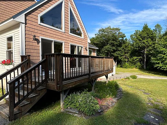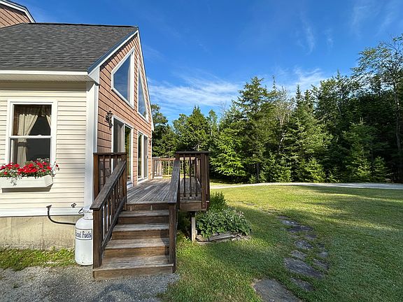 HUGE PRICE REDUCTION! This beautiful 3 bedroom 2 bath Chalet home was build in 2000. 3 floors with a bedroom on each floor. Home is on 7.30 acres with beautiful landscaping including Apple & Crab trees and beautiful gardens. There's a brick patio area for a fireplace, a breezeway from the garage to the house, a large deck on the front for relaxing. A 2 car garage with new doors put on within the last 5 years, a 12x16 shed for additional storage in the backyard with a small brook that flows along the wood's line. Inside the home you have the kitchen with oak cabinets, an island, pantry off the kitchen. Living room has beautiful large windows and propane fireplace. Off from the dinning room you have a bedroom/office. Full basement with family room and bedroom. Upstairs bedroom has a walk in closet and full bathroom. Hardwood flooring in dining room and upstairs bedroom also has hardwood floors. Very quiet and safe neighborhood off a paved road.