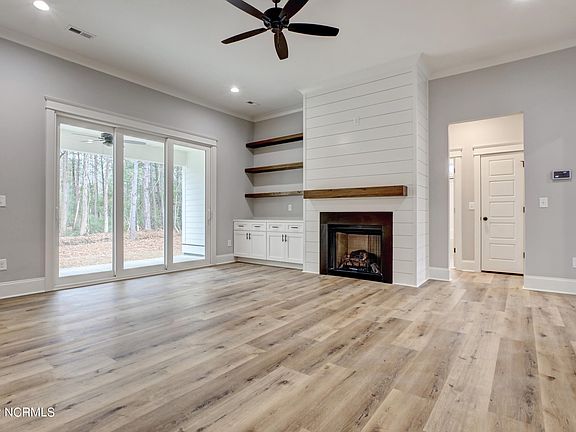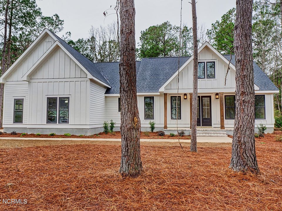 Beautiful custom Farmhouse within the gated community of Eagles Watch. Stunning Curb appeal on a .52 acre home site with over 3000 sq ft of heated living space. The open floor plan is wonderful for entertaining or a large family! The Great Room has a gas fireplace w/ shiplap. Telescoping slider door opens up to the covered back porch. Kitchen features quartz counters, large island w/ farm sink and plenty of bar seating, tile backsplash, stainless steel appliance package, soft close doors & drawers, under cabinet lighting plus a walk-in pantry with wood shelving. The Dining area has plenty of light and sits right off the kitchen and living area. This floor plan features 3 bedrooms on the first floor plus a home office/flex room. Primary bedroom with tray ceiling, split dual sinks, oversized tile shower and walk in closet. Split layouts with Bedrooms 2 & 3 are on the opposite side of the house that share a full bath. Full size laundry room on the main floor. As you walk upstairs there is plenty of space within the bonus room, a 4th bedroom plus another full bathroom. Eagles Watch is a premier development with community pool, fitness area, movie room & community dock with kayak launch. Topsail School District. Schedule your showing today.
