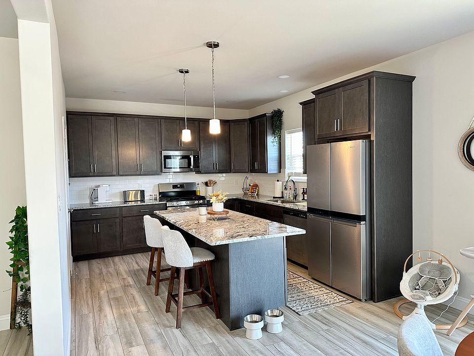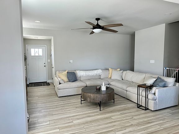 Some photos are before we moved in. The bedrooms have blinds and will have ceiling fans installed prior to move in.