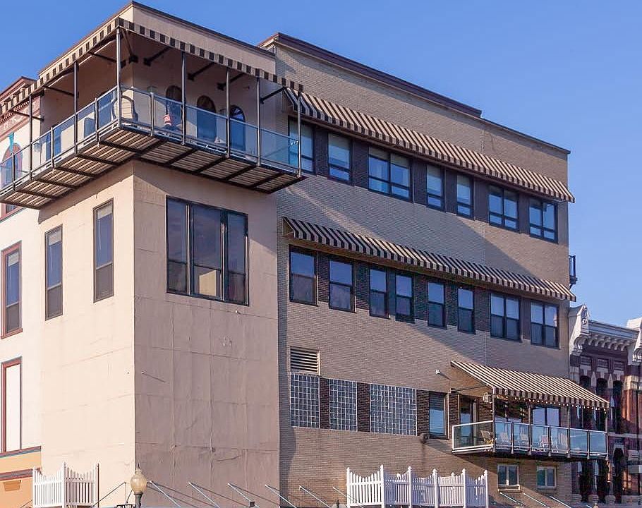 LOTS OF NEW UPDATES INCLUDING FLOORING AND INTERIOR PAINT IN THIS FANTASTIC CONDO MAKING IT MOVE IN READY - 218 JEFFERSON FORMERLY THE SCHRAMM BUILDING. SOPHISTICATED, YET CASUAL AND COMFORTABLE BEST DESCRIBES THIS 2 BEDROOM 2.5 BATH UPPER LEVEL CONDOMINIUM WITH A VIEW OF THE MIGHTY MISSISSIPPI RIVER. THE OPEN FLOOR PLAN INCLUDES AN INVITING ENTRY WAY, ENTERTAINMENT SIZED KITCHEN WITH CHERRY CABINETRY AND APPLIANCES, FORMAL DINING WITH ACCESS TO DECK. ALCOVE WITH WET BAR, LIVING ROOM AREA WITH A FIREPLACE AND PANORAMIC VIEW, OFFICE AND SEPARATE TV ROOM WITH BUILT IN CABINETRY. THE MASTER BEDROOM SUITE INCLUDES PRIVATE SITTING AREA, WALK IN CLOSET. MASTER BATH WITH SHOWER AND CORNER JET TUB FOR RELAXATION ALL COMPLIMENTED BY AN EXPANSIVE, ORIGINAL BRICK WALL. FOURTH FLOOR CONDO SERVICED BY AN ELEVATOR.