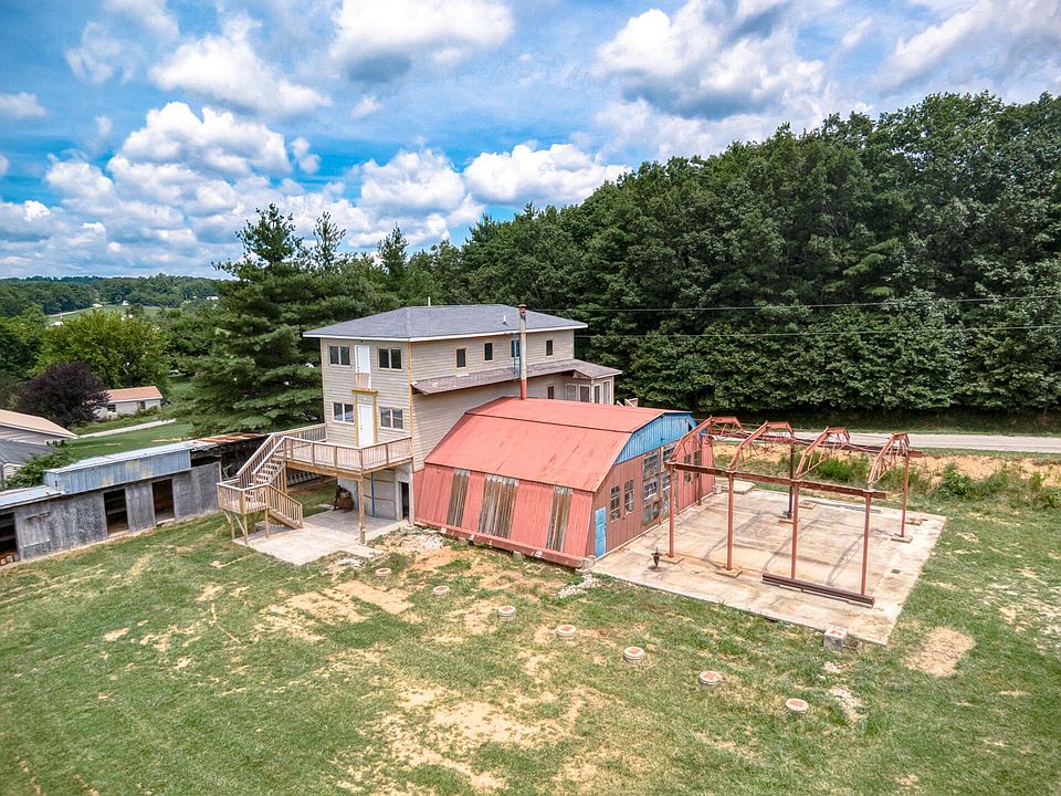Three bedroom, 3.5 bath home with huge workshop/garage spaces on 3.2 acres in Floyd County, Virginia. Multiple levels totalingover 3,000 square feet of living spaces. Ground level has full bath, kitchenette and single car garage, plus additional oversized attached 1,350 sq ftgarage. Second level has open floor plan with full kitchen, oversized pantry, mudroom, family room with fireplace, and half bath. Top floor has 3bedrooms and two full baths, including over 275 sq foot bedroom with en suite bathroom overlooking large back lawn. Home is being renovated: newdrywall, new flooring, new cabinets, new futures, lighting, and appliances already in place, all the heaving lifting has been done for you. Perfectopportunity to do your own finishing touches or seller can complete