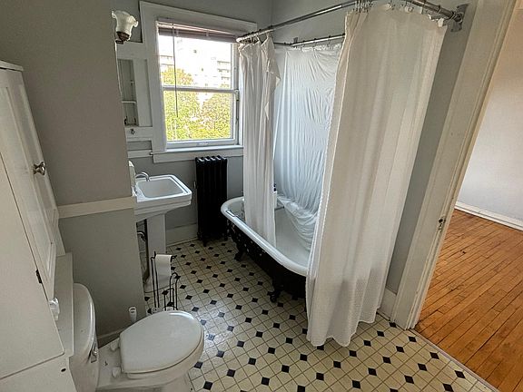 This awesome apartment has all hardwood floors and a kitchen that will blow your mind! There is an amazing view from the entire apartment of the downtown area. The living room and dinning room area have lots of windows, one of which is stained glass. There is tons of closet space! The deck in the back is a perfect place to drink coffee in the morning, or chill on in the afternoon. These are pictures of #6 which is almost identical to #5 with paint color changes and some floor differences. Available Now Pets are $50 extra and $200 non-refundable pet fee. Please call within business hours: Mon-Fri 9:00-5:00pm. This phone is an after hours emergency maintenance number. Thanks!! We pay gas (heat), trash, water, lawn care and snow removal. Resident pays electricity and wifi.