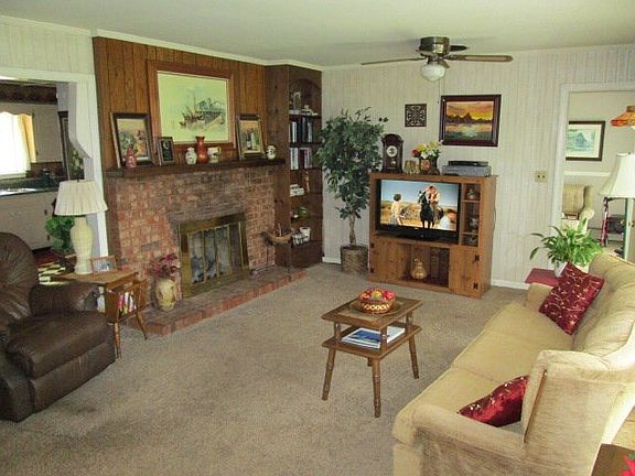 ONE LEVEL BRICK RANCH OVER 2000 SQ.FT. Priced to sell! Needs TLC, but a lot of sq.ft. for the money. Has a shop in back w/power for the man of the house. Mature landscaping and partial fencing for privacy. Living rm w/gas log fireplace, dining rm, kitchen, office or den w/2nd fireplace, another room just for storage coming off large double carport. Lots of parking area.