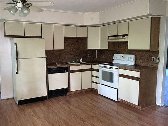 Great starter home or investment property! This property features 3 bedrooms, 2 full baths, opening dining area, large living room with wood burning stove, and attached garage. Master bedroom has full private master bath. Spacious fenced rear yard is perfect for relaxing or entertaining. With a little TLC, this home can be restored to its former grandeur!