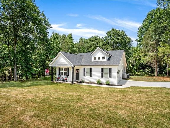 Welcome to Lake Forest Circle, a Lake Hartwell neighborhood with no HOA, so you can conveniently park your lake toys at your house. This house is located LESS than a mile to a public boat ramp leading to open, deep, big water and Portman Marina just 1 bridge away and an easy boat ride to Green Pond Landing, Big Water Marina, The Local Eatery and great places to beach or anchor your boat. This 3 bedroom, 2 bathroom home was built in 2021 and is immaculate with lots of buyer upgrades! This home is tucked back off the street and surrounded by privacy trees with a great rocking chair front porch. When you enter, you will see beautiful lighting selections, luxury vinyl tile flooring, neutral colors, matte black handles and pulls, and custom blinds throughout. To the left is a formal dining room or flex space that leads to a kitchen with pantry, gas stove with built-in microwave above, dishwasher, and refrigerator (all stay) and beautiful granite countertops with a bar opening to the living room, which is perfect for spreading out food when entertaining. The living room has beautiful vaulted celings, gas fireplace, floor outlet, and glass door leading to the private covered back patio. From the living room / just outside the owner's bedroom is a spacious laundry room. The owner's bedroom has tray ceilings, large walk-in closet, garden tub, double sink and step-in shower. Bedrooms 2 & 3 are spacious with good-sized closets with double doors and a shared hall bathroom with a double door storage closet opposite the bathroom. Call an agent for a full copy of the floor plan and to schedule your showing today.