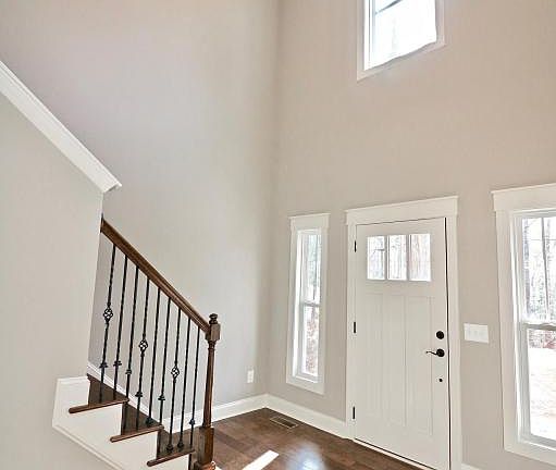 Lovely craftsman style new construction with stone and wood accents. Open kitchen, living, breakfast area. Master suite and one other bedroom with full bath on the first floor, another bedroom, full bathroom and recreation room which could double as a bedroom on the 2nd floor. Ample storage because of the stick built roof. Light, airy and attractive. With dark engineered wood flooring, white cabinetry, light granite counters. The living-room fireplace is flanked by built-ins on either side. A large 18'x12' deck out back, and lovely covered front porch provide plenty of outdoor seating areas. Formal dining-room, separate laundry, drop-zone, and good sized garage complete the generous square footage of this charming home.