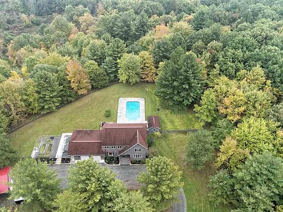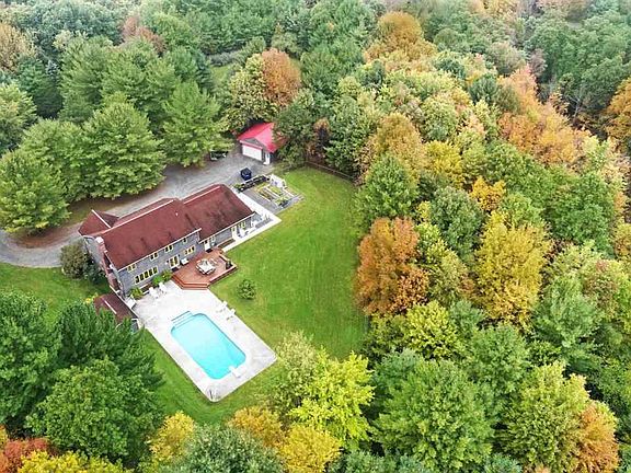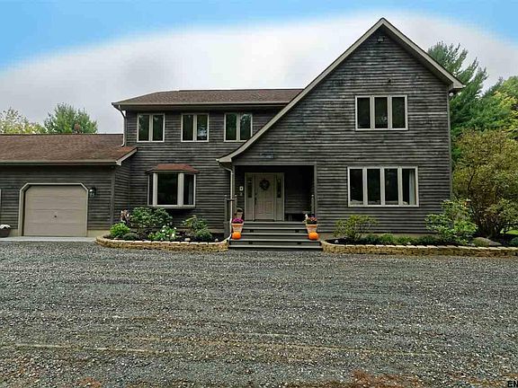 Privacy & tranquility galore! 4 bdrm 2900sq. ft. custom estate, picturesque 8.09 wooded acres w/trails & stream 15 minutes to Albany w/ easy access to I90. Feat: gorgeous remodeled high end bath & kitchen w/granite & stainless appliances, master suite w/walk-in, fenced in yard, pole barn, hardwoods, Cedar siding stained in 2018, 1st floor mudroom w/laundry, oversized attached garage w/built-in kennels , Geothermal Forced Hot air w/C/ Air, 19 x 40 In-ground pool w/cabana, C/vacuum system, Schodack Schools