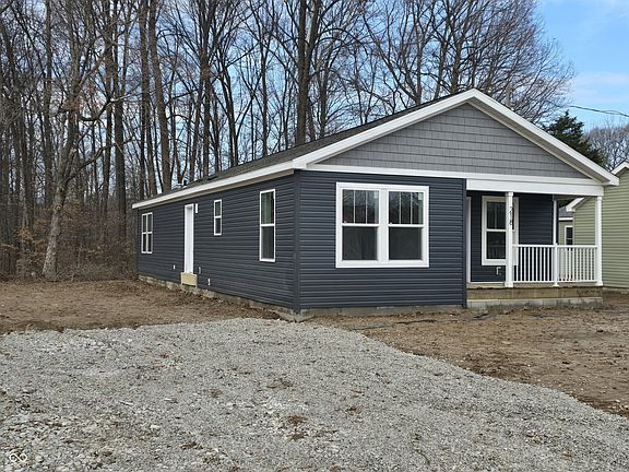 Move into your brand new beautiful home sitting on a very nice lot in Stardust Hills with access to fishing lakes with proposed completion in January. This 3BR 2BA 1475SF modular home has just been set on an encapsulated crawl space and there can be an option for a garage to be built for additional price. The beautiful kitchen has a large center island and abundance of beautiful cabinetry with stainless steel appliances and kitchen exhaust. Flex room could be dining room or office area. Large laundry area. Primary bedroom has a very attractive bathroom with double sinks and large full shower. 2nd bath has large vanity space area with tub/shower combo across from the 2 additional large bedrooms. Home will come with a 6x6 front landing deck with white vinyl rails and 10x20 back deck will be built. Home has 5/12 pitch roof, 2x6 exterior walls, 2x4 interior walls, 2x10 floor joists, 30 arch shingles and comes with a 1 year blanket warranty from builder, 5 year plumbing and electrical warranty and 10 year structural. Carrier Heat Pump. High fiber internet available. City water and sewer. Convenient to I-70 for good commute and close to restaurants. Enjoy access to 5 Maintained Fishing Ponds, and Community Clubhouse, Inground Pool, Basketball Courts and over 52 Acres of Common Area. This home will qualify for USDA, VA, FHA. Home is not on lot at this time and pictures are from previous model home. Living room set up is not the same but similar on this model.