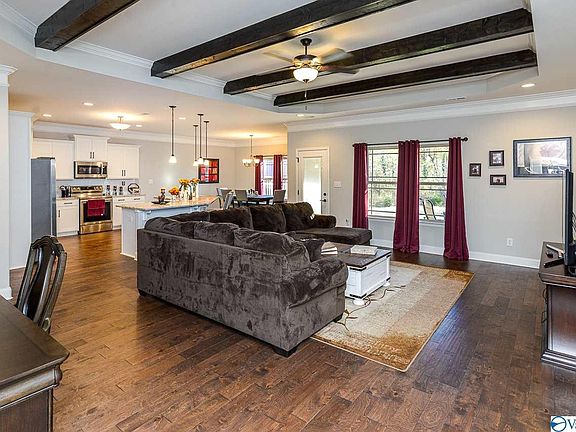 Beautiful brick 3 bedroom, 2 bath open floor plan. Kitchen features stainless steel appliances, tile backsplash, farmhouse sink, pantry and granite counter tops. Hardwood throughout the family room, kitchen and dining area. Master suite with sitting area, large walk-in closet, double granite vanity, soaking tub and separate shower. Tile throughout bathrooms and separate laundry room. Covered front porch and back patio. Gutters and screened windows. Four person storm shelter. Side entry garage. Quiet cul de sac.