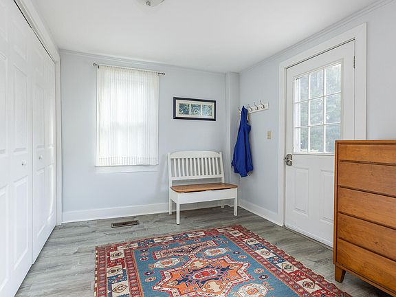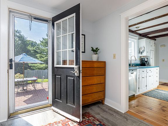 Beautiful cape with charming period details throughout offers a terrific location close to Freeport Village and includes a separate adjacent lot, providing wonderful privacy and multiple opportunities in the Village 1 zone. The house is move-in ready with gleaming wide pine floors, fresh paint, updated windows, a new water heater, heat pump, an immaculate shed, a private outdoor patio. The first floor offers a spacious mudroom, bright kitchen with an ornamental brick fireplace and an island with dining bar, a living room, a lovely dining room with cathedral ceiling, wood stove and a door to the private side yard, a living room, a first floor bedroom, a laundry room and a full bath. Upstairs are two additional bedrooms with ample storage. This offering includes two separate lots (see survey) that border Frost Gully Brook and total 1. 86 acres. Come see this great property!