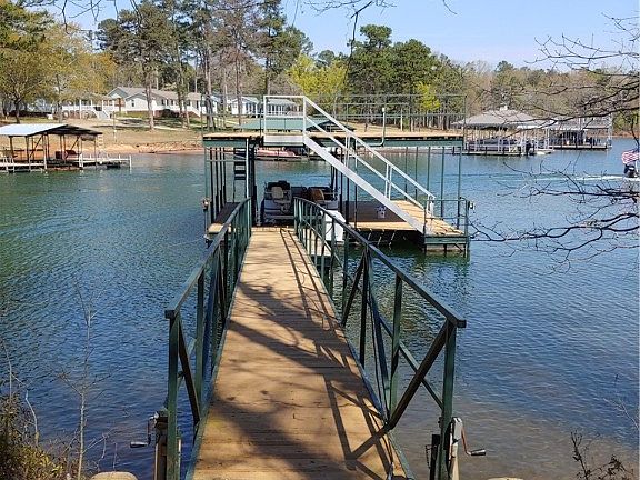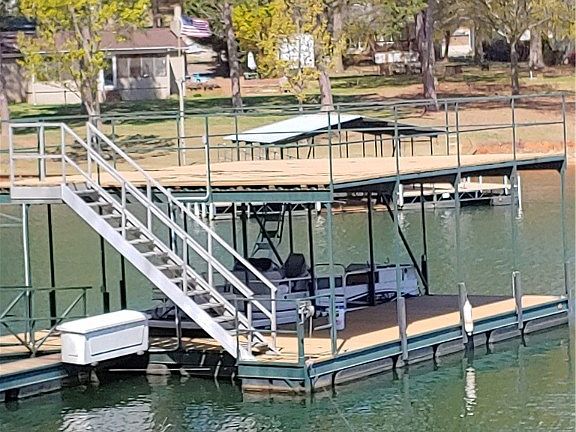 Home comes with a deep water, 2 level SUNDECK dock in place. ( 24'x28' dock with a 4'x60' ramp with wheels) Water depth over 25' at end of slip. Approx 185+- feet of Corp. shoreline offers unrestricted big water views from dock.