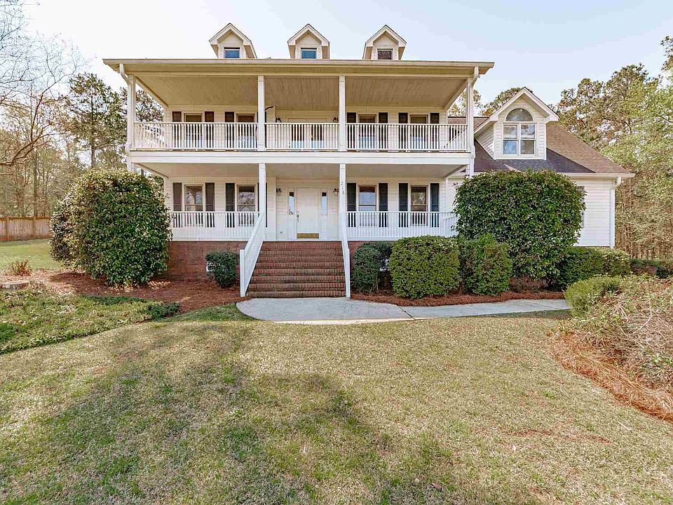 Want lake access in a small community, incredible views of the water from your double porches, and a private pool? This house has all of that and more! 4 upstairs bedrooms that are freshly painted with new carpet and 3.5 baths throughout the house! The 4th bedroom over the garage has a private bath which is perfect for guests! Great spaces for entertaining and a double sided fireplace!