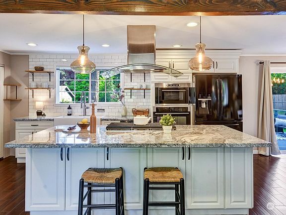 Welcome to the fantastic home nestled at the end of a serene, dead-end road, that leads onto the enchanting McCullen Park. This spacious 4 bed, 2.75 bath residence offers a seamless blend of comfort & style. The heart of the home - an open-plan kitchen - a farm-style sink & soft close drawers, perfect for entertaining. The extra wide staircase & hallway add a touch of grandeur, leading you to the upper level. The primary bedroom offers a private deck for those relaxing moments. Downstairs has a mother-in-law suite, w/ kitchenette & 2 separate entrances. McCullen Park, has a children's playground, horticulture garden, & pool! Fully fenced, Close to Mill Creek & in the award-winning Mukilteo School District...this home won't last long!