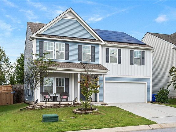 Welcome to this 2019 Morrisville beauty—a home that blends modern living with unbeatable efficiency! With an assumable FHA loan at a super low interest rate below 3 and solar panels that keep your power bill near zero, this home is as smart as it is stylish. The 10-year structural warranty? That's peace of mind included.Outside, you'll find a spacious, fully fenced yard with a large patio perfect for BBQs, plus a cozy fire pit for evenings under the stars. Located on a quiet street near a cul-de-sac, yet just minutes from 540, RTP, and RDU, this home offers the best of both worlds—serenity and convenience. Inside, the open floor plan is made for entertaining! The stylish kitchen features a nice island, espresso cabinetry, granite counters, stainless steel appliances, and a sunny breakfast nook. This is the place where memories with friends and family are made! Durable LVP flooring runs throughout the main floor, while a versatile loft upstairs adds even more space to play, work, or relax. The owner's suite is a true retreat with a large custom walk-in closet and a spa-like bath featuring dual sinks, quartz counters, and a roomy walk-in shower. Spacious secondary bedrooms come with ample closets and a ceiling fan. Bonus perks? A large laundry room with counter space, washer and dryer included, and upgraded light fixtures throughout make this home bright and cheery. With a two-car garage, driveway parking, and access to fantastic neighborhood amenities, this home is move-in ready and waiting for its next chapter. Comfort, convenience, and energy savings await you in this dream home!