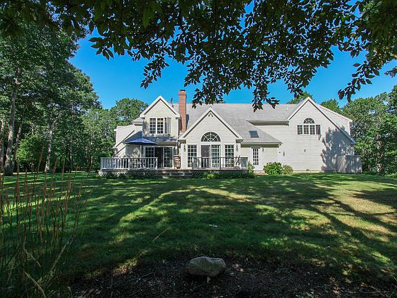 A recently renovated Kitchen and Bath highlight this Spectacular Home. The 4 bedroom 3.5 bath house has 5 garage bays, one with a 12' door. A dream setup for a contractor or hobbyist with toys. A beautifully designed home, just updated with new kitchen cabinets, quartz counters, and hardwood floors. A double-sided fireplace adds style to the kitchen and the light-filled living room. Upstairs is the HUGE primary suite, with a new bathroom that feels like a private spa. There are 3 more good size bedrooms, another bath, plus a convenient 2nd-floor laundry. A finished basement with new flooring has a full bath for more space to enjoy. Fantastic outdoor living space as well, with a large deck, a good size yard, a fire pit area, and an outdoor shower. The convenient location provides easy access on and off the Cape. There is room for everyone here, with the potential for an in-law apartment. The house sits on 1.5 acres and abuts 500 acres of conservation land for added privacy and space.