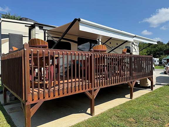Are you looking for your seasonal or year round retreat in the beautiful North GA mountains? Look no further. This 2018 Montana 5th wheel comes fully furnished with large deck, outdoor covered living/kitchen area with two grills and log sided storage shed. All your outdoor furniture, TV, and golf cart included. Community has welcome center, clubhouse, activities center, bathhouse, laundry, spa and fitness center with bar area. Two pools,Jacuzzi spa, double-sided waterfall, dry sauna/steam room, two massage rooms, gym, putt-putt greens, pool tables, card tables, dart boards, croquet, dog park, trout streams, shuffle board, horseshoes, tennis and pickleball courts.
