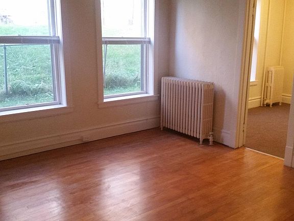 This 1st floor apartment features a large living room, hardwood floors, dining area, and rear enclosed porch! We pay the heat, water, sewer & garbage. Tenant responsible for electric. Shorter term lease available for additional charge. PET FRIENDLY with approved Pet Agreement. Must be able to pass BACKGROUND CHECK (no felonies or evictions in past 7 yrs), CREDIT CHECK, and meet INCOME REQUIREMENTS of 2 1/2 times the rent (or have cosigner). Viewings by appointment only - call Katherine to set up a private showing. Office located at 801 E 1st St.