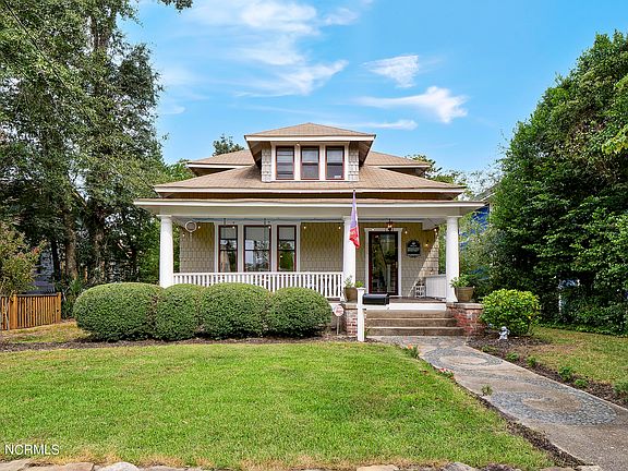 Nestled in the heart of the sought-after Carolina Heights neighborhood, this beautifully renovated historic home offers a perfect blend of classic charm and modern luxury. The deep front porch, complete with a swing bench, invites you into a large entry foyer that sets the tone for the spacious interior. The living room, with built-in bookcases, flows seamlessly into a formal dining room with a fireplace, creating an inviting space for entertaining. The kitchen, completely updated in 2021, is a cook's dream with a gas stove, stainless steel apron sink, refrigerator, and granite countertops, complemented by a coffee bar for your morning routine. Conveniently located off the back hall are: 1.) a large walk-in pantry with a utility sink, 2.) a powder room, and 3.) ample storage closets. Upstairs the primary bedroom features its own fireplace and opens into a charming sunroom that overlooks the beautifully landscaped backyard. The ensuite bath, remodeled in 2021, includes a generous walk-in shower, offering a spa-like retreat. The hall bath is equally luxurious, featuring an oversized tub with spa fixtures and a touch-sensor mirror over the vanity. Two additional bedrooms, one with a custom-built desk area, provide flexibility for family or guests. The home's wrap-around screened porch with views of the lush garden, complete with a fountain, is the perfect spot for enjoying your morning coffee or hosting gatherings. Additional updates include new windows, baths, kitchen, tankless water heater, and an upstairs HVAC system. The exterior is equally impressive, featuring a newly landscaped garden, a new shed with electricity, a new fence with double gates, and a large gravel parking pad accessible via an alley. This home is a true gem, offering timeless elegance and modern conveniences in a prime location.