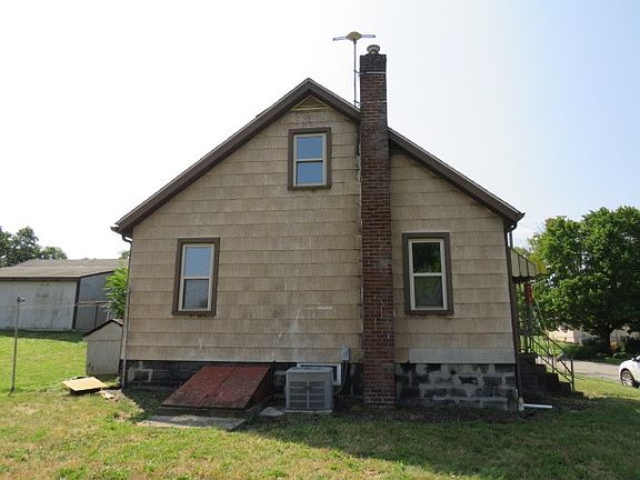 Cape cod style home with a large two car detached garage that is located on a level lot. On the main level you will find the living room, kitchen and main bedroom.