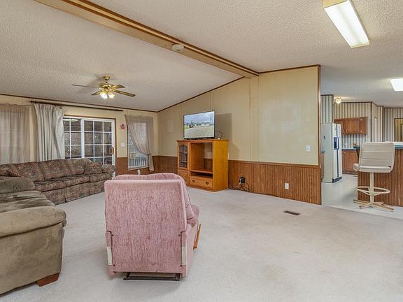BACK ON THE MARKET AT NO FAULT OF THE SELLERS!! This well-kept manufactured home sits on permanent foundation with a very nice metal roof. Upon walking in you will see a spacious living room with an open kitchen ideal for those that love to entertain. The master suite has a large walk-in closet and master bath. It features two additional bedrooms and a full bath down the hall. Walking into the garage you will see that the garage is concrete and going through another door you will find another garage added on that is big enough to put a small tractor in or make it a storage place. Both garages feature a garage door opener for easy access.
