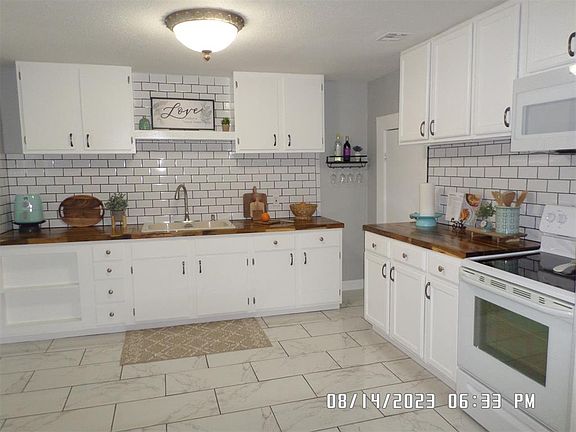 TOTAL REMODLE WITH MANY NEW FEATURES- FLOORING- COUNTER TOPS- STOVE AND MICROWAVE- LIGHTING- TEXTURE AND PAINT BATH UPDATES- DOORS AND WINDOWS. NEW WOOD FENCE- SUPER NICE.